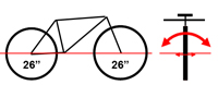 - Плохая маневренность. Так как для изменения положения большего колеса в пространстве, приходится прикладывать к нему и большее усилия(гироскопический эффект), - маневрирование на таком велосипеде становится довольно затруднительным. В добавок, более длинная база велосипеда (оси колес разнесены дальше друг от друга), делает весьма затруднительным поворот в ограниченном пространстве. Например, узкий и резкий поворот на лесной тропке.