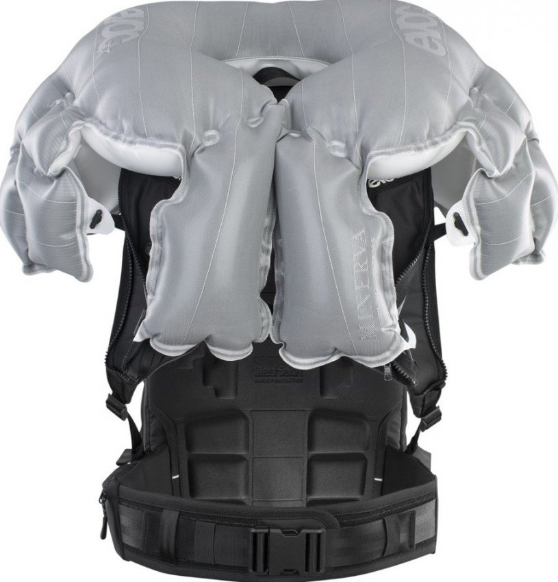 Внезапное резкое изменение этих параметров указывает на то, что происходит падение, тогда расположенная наверху подушка безопасности срабатывает и полностью надувается за 200 миллисекунд. Она защищает шею, плечи, ключицы и грудь велосипедиста, а дополнительную защиту позвоночнику дает встроенная в рюкзак сменная пластина для защиты спины EVOC Liteshield-Plus.