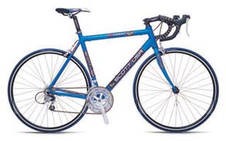 Комплектация. Оборудование Shimano Road всех классов или Sram Road. Две или три ведущих звезды и 8-10/6-9 ведомых звездочек, подобранных с малым шагом от передачи к передаче: итого - 18-27 передач. Характерная особенность современных шоссейных велосипедов - манетки, интегрированные с тормозными рычагами. Старые и недорогие велосипеды оборудовались манетками, расположенными на раме. Тормозная система консольного типа (V-brake).