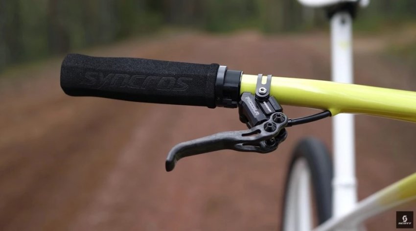 Вместо руля «бараний рог», как на большинстве гравелов, Гуллхольм выбрал плоский карбоновый руль Syncros Fraser iC SL. Чтобы руль выглядел гладким, он усилил его и затем просверлил отверстия с обеих сторон, чтобы проложить шланги гидравлических тормозов внутри.