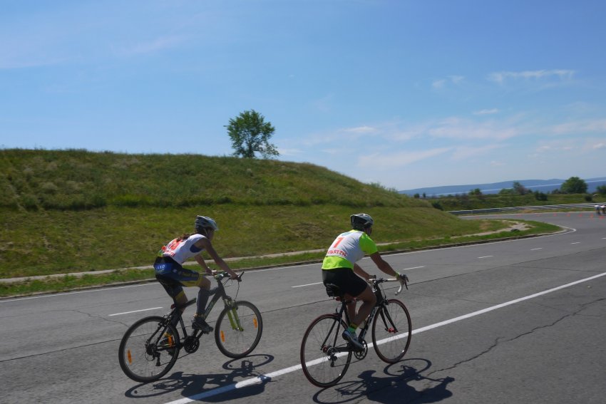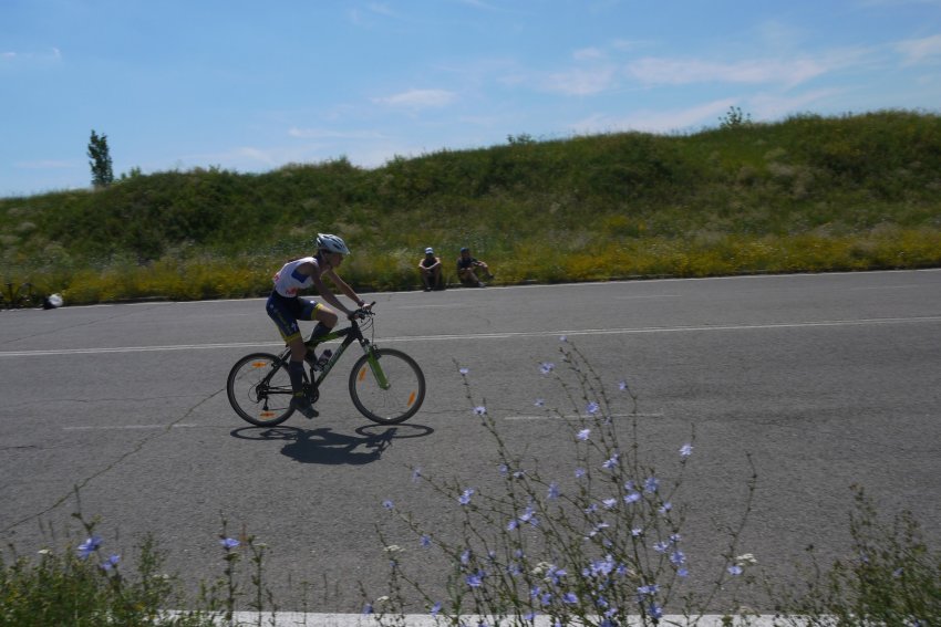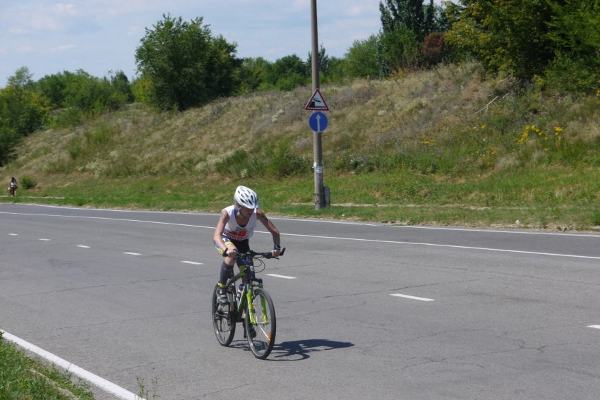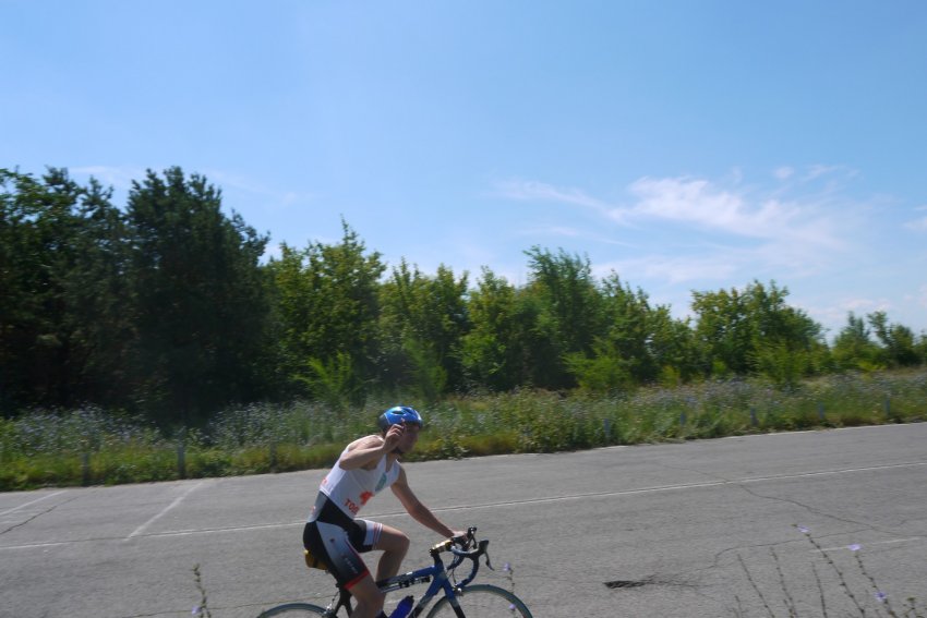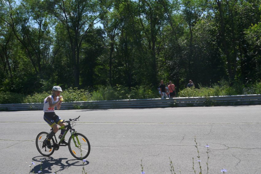 Велоэтап представлял из себя 14 кругов по 3 км. Въезжая на круги я встретила Мишу. Он к этому времени уже успел проехать 1 круг. Он спросил как я себя чувствую.