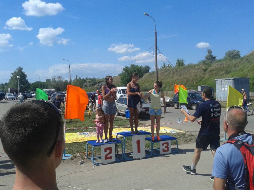 Понеслась!))) Правда это громко сказано. После вела, необычные ощущения. Описать их сложно. Первый км начала из 4 минут, хотя казалось, что еле-еле. Дальше бежала с крейсерской скоростью и более менее ровно: по 4.17-4.20 мин на км. Здесь меня ждали привычные мне ощущения с которыми я знала как работать))) По чувствам в таком темпе, хотя нет, чуть медленее (по 4.30), я могла бы пробежать ещё столько же))) На протяжении всего бегового этапа, я слышала поддержку не только от родных, но и от соперников. Это было очень приятно.
