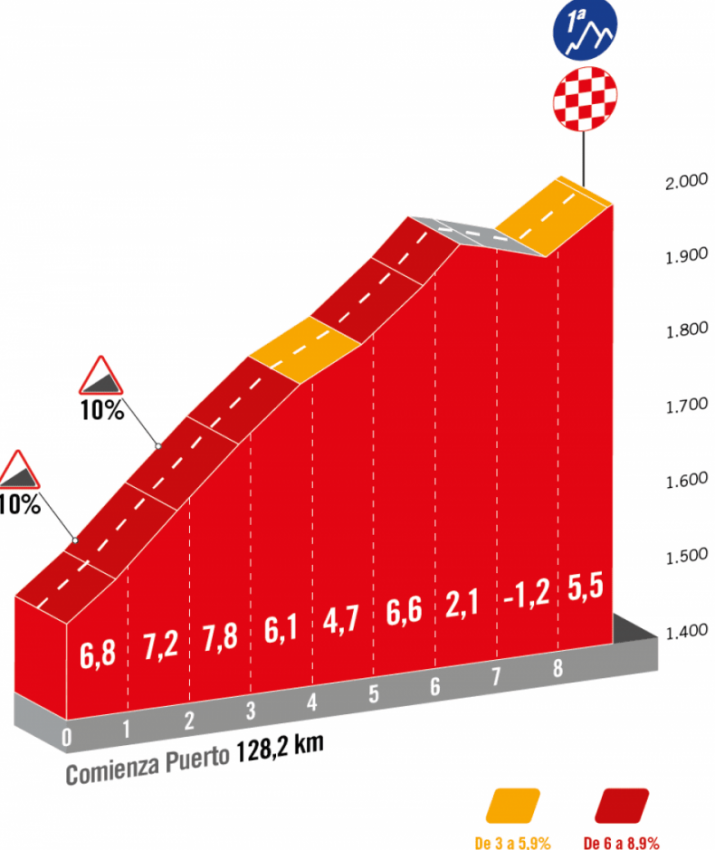 В последний раз Коль д'Ордино появлялся на Вуэльте Испании в 2019 году, первым на вершине был Микель Бискарра (Mikel Bizkarra). На вершине будет разыграна бонификация.