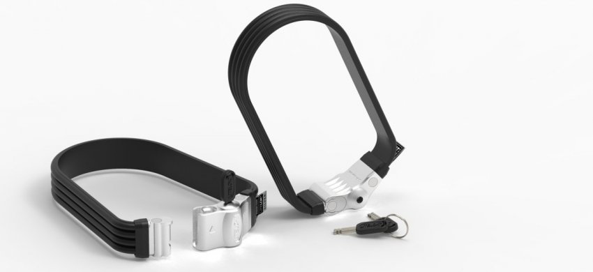 Одно из основных отличий Flexi-U от Gold, заключается в том, что ремень имеет не круглую, а U-образную форму, как скоба U-образного замка. Такая форма лучше подходит, чтобы пристегнуть раму и колеса велосипеда к ближайшему неподвижному объекту.