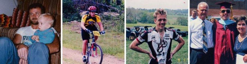 Слева направо: мы с дедом друзья; я финишировал последним в своей первой гонке; я потерял 18 кг и стал быстрее; дедушка и я в день окончания магистратуры в 2012.