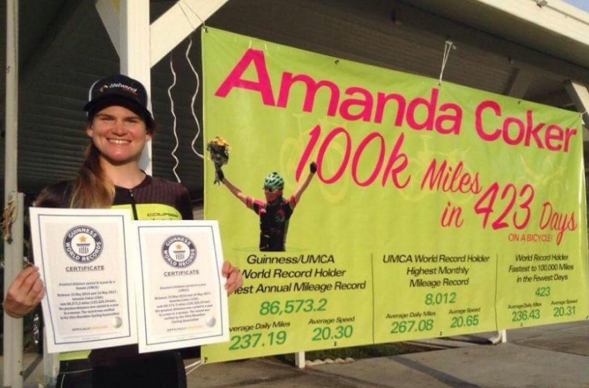 Но 23-летняя Аманда Кокер накрутила 237,19 миль в день, когда решила побить рекорд Зирфогеля в мае 2016 года. В итоге, за год она преодолела 86 573,2 мили, но не остановилась, а стала устанавливать рекорд «100 000 миль за самое короткое время» и прошла это расстояние за 423 дня.
