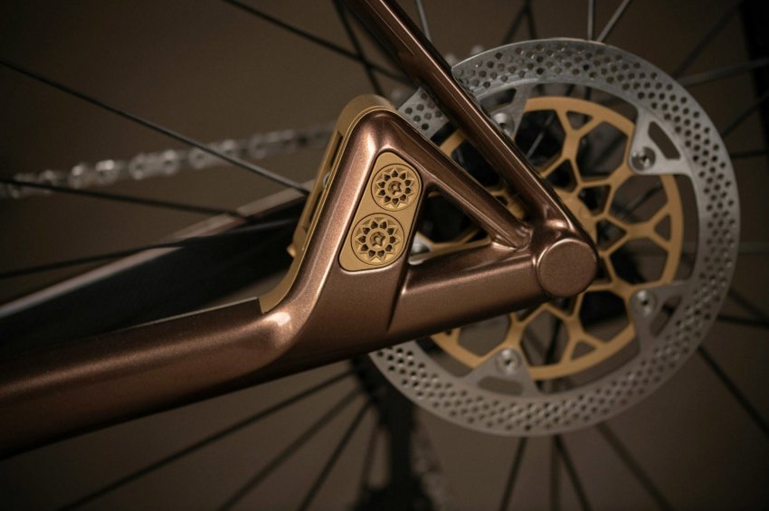 Керамическое покрытие таких деталей, как чашки каретки, калиперы и середина тормозных дисков, можно выбрать цвета бронзы или приглушенно черное.