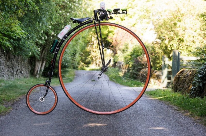 Ричард Тодей проехал 874 мили (1 400 с небольшим километров) на старинном велосипеде, который называется пенни-фартинг.