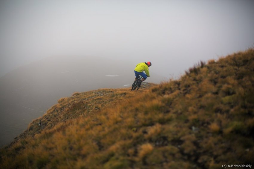 Рядом с этой трассой или на ней мы с фотографом Андреем Британишским нашли много съемочных мест, даже природные дропы, что-то я проехал, что-то оставил на потом, а сам поймал себя на мысли, что здесь отличные условия для внетрассовых спусков на байке. Тропа мимо озера не является официальным трейлом, но очень красивая и вполне доступная (по дороге надо набрать метров 100 высоты).