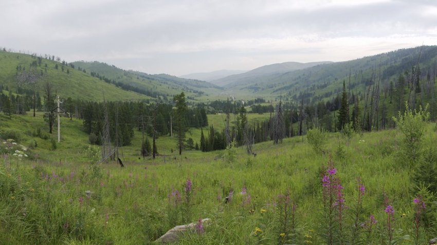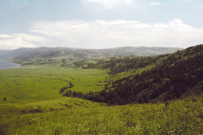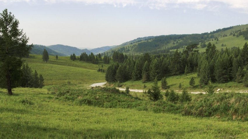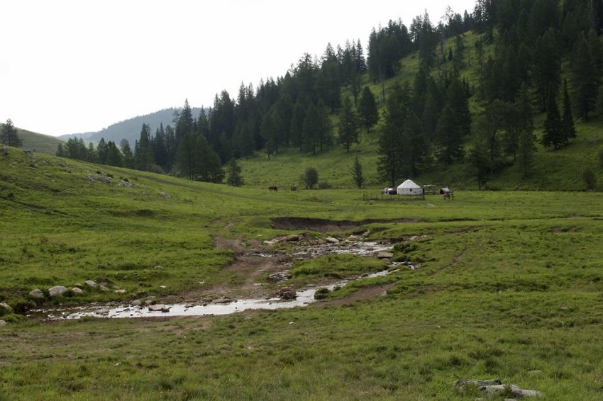 За перевалом хвойная тайга сменяется широколиственной, а вскоре и вовсе начинает кончаться. Появляются первые летние юрты, пасутся стада. В районе Успенки начинается степная котловина Акжайляу — Белый Луг, и дальше на юг будет только степь и полупустыня до самой китайской границы.