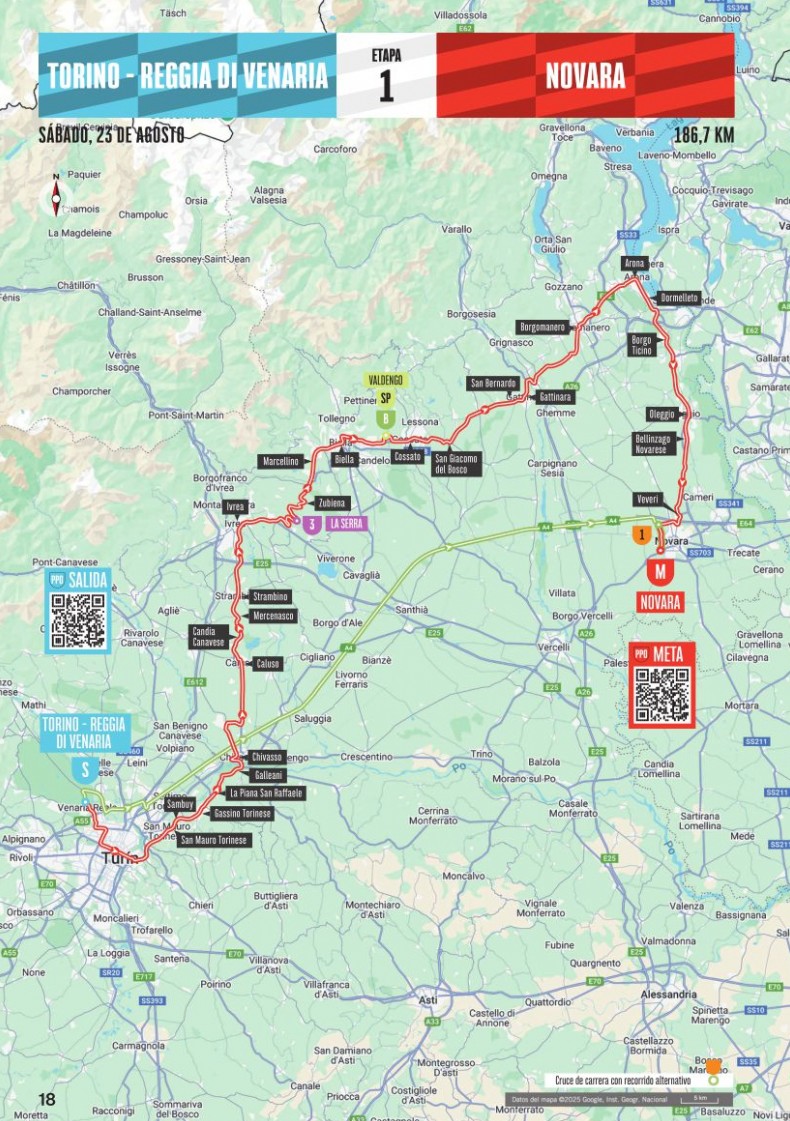 Новара (Novara, административный центр провинции Новара, регион Пьемонт, Италия) впервые принимет финиш этапа Вуэльты Испании. Победитель этапа станет первым обладателем красной майки лидера генеральной классификации Вуэльты Испании-2025, может и нет, но обладателем зеленой майки лидера классификации по очкам. аворитами можно назвать Мадса Педерсена, Элиа Вивиани и других.