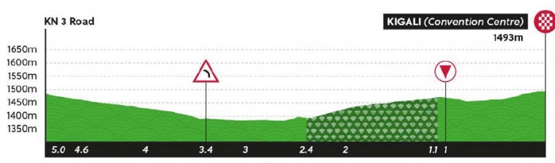 Подъем Кот-де-Кимихурура (Cote de Kimihurura, отм. 1468 м, перепад высот 82 м, протяжённость 1,3 км, средний градиент 6,3%, максимальный градиент 10%). К усталости, накопившейся от 38,2 км преодоленной дистанции, велогонщикам добавится ещё и брусчатка на протяжении всего подъема, можно сказать небольшой участок Тура Фландрии. Вершина подъема расположена за 1,1 км до финиша этапа. Короткий спуск и заключительные 500 м дистанции со средним градиентом в 8% до финиша этапа, на отметке 1493 м над уровнем моря.