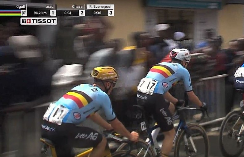 Виктор Кампенартс, товарищ Эвенепула по сборной Бельгии, в интервью HLN объяснил, что случилось с велосипедом Эвенепула на подъёме: «На большом круге, когда приближались к Монте-Кигали, дорожное покрытие было очень плохим. Он попал в выбоину, из-за чего седло его велосипеда сдвинулось. Это в высшей степени неприятно, да ещё в самый ключевой момент Чемпионата мира, особенно, когда нет радиосвязи».