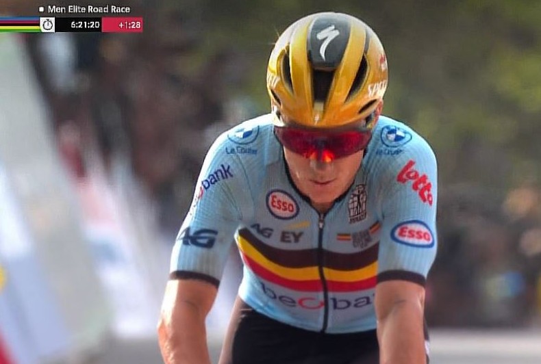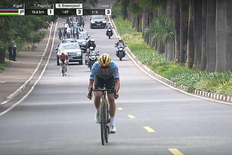 Ремко Эвенепул завоевал серебряную медаль в групповой гонке на Чемпионате мира по шоссейному велоспорту-2025 в Кигали (Руанда) через неделю после золота в индивидуальной гонке на время.