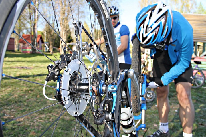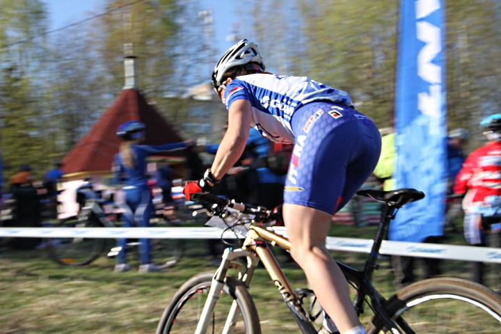 15 мая в 10-00 начались первые старты. Первыми в рамках чемпионата Вологодской области и этапа кубка России ушли на трассу юниоры, а за ними элита. В элите все было достаточно предсказуемо – впереди Гоголев Максим и Гоголева Елена. Немного отстала от Елены Ксения Черных (Giant), но тут сказался и проблемный старт, и огромный сук на последнем круге, распоровший ей бедро и велотрусы на полном ходу. А вот в рамках кубка Giant стартовали в 14-00 любители и тут интрига была. Со старта очень резко ушел Сергей Третьяков, причем все это напоминало спидвей – брызги земли и езда с задранным передним колесом смотрелись эффектно! Показалось, что этот мускулистый парень так же легко на одном колесе проедет все пять кругов, но… опытные гонщики обогнали его на подъемах и в лужах. К третьему кругу уже четко определились лидеры и свое они уже не упустили.