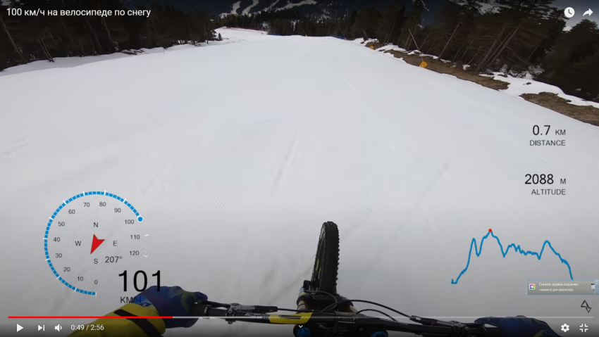 Где-то год назад на ютюбе посмотрел сюжет Ивана Кунаева, как он ехал быстрее 100км/час по пологой горнолыжной трассе в Архызе. Показалось, что велосипедист едет быстрее лыжника в схожей одежде.