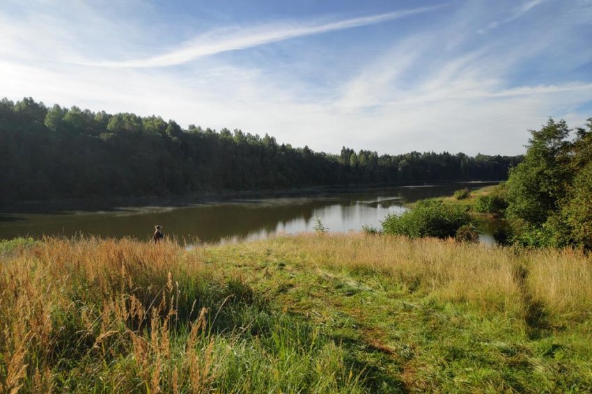 Ну вот и приехали. Вот этот кусочек воды посреди болота - и есть Днепр. Отсюда он течет поперёк всей Смоленщины, пересекает пол-Белоруссии. Через Смоленск и Оршу, Могилёв и Буйничское поле. И только потом заканчивает остаток своего пути где-то на Украине.