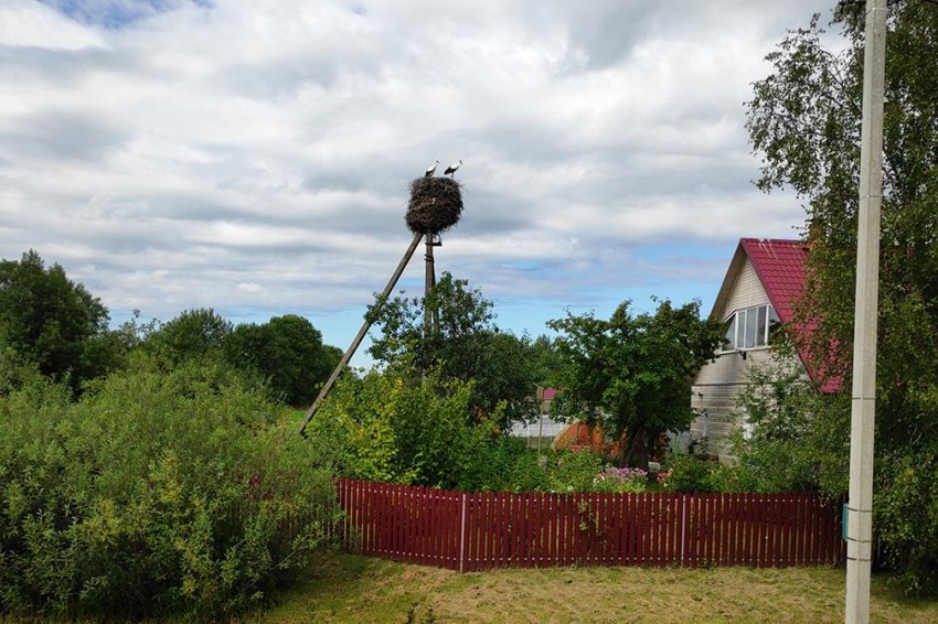 Аисты гнездятся здесь едва ли не на каждом столбе. Весной сидят по двое, романтичными парочками. Но сейчас в каждом гнезде уже подросло по наследнику, и стало не до романтики: кто-то из трёх - вероятно, папаша - в гнезде уже не умещается и обычно сиротливо стоит на одной ноге на соседней крыше. Да, дети - это цветы жизни... а родители - удобрение для этих цветов.