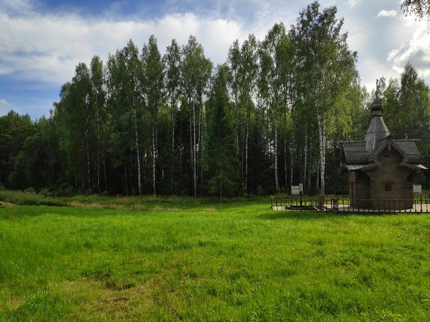 Рядом с истоком скромный стендик в память о солдатах 119-й Красноярской дивизии, оборонявших эти места осенью 1941. Когда-то сюда водили, наверное, пионеров, строили линейки - "Будь готов! - Всегда готов!". Сейчас же это вотчина новодельного монастыря. Монахов, правда, видно не очень много. Всё больше строители со среднеазиатскими лицами, да какие-то тётки - ландшафтные, типа, дизайнеры - дают указания, куда какие цветочки посадить.