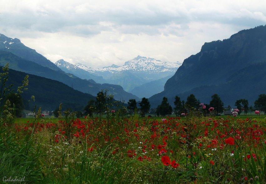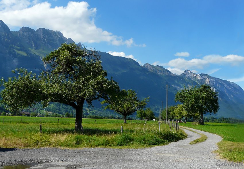 Мы не первый раз путешествуем по Европе. Альпы и Альпы… Что может быть необычного? Но швейцарский пейзаж не спутаешь ни с чем. Горы выше, круче. Чем-то похожи на итальянские Доломиты. Проезжая по долинам, то там, то здесь видим опоры от подъемников. Здесь много маленьких локальных курортов. За скалами, поросшими густым лесом расположены поля для катания.