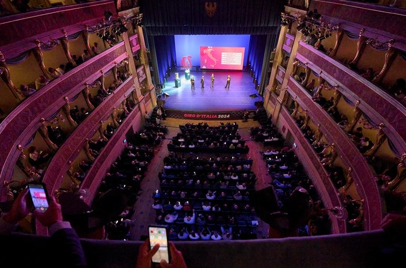 Презентация маршрута Джиро д’Италия-2024, проходившая в театре Тренто, собрала почётных гостей - победителей итальянского Гранд-тура и этапов Джиро.