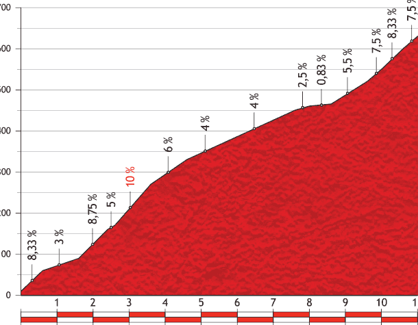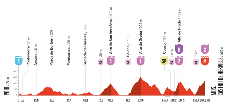 После 15 км пересечённого рельефа финишировать будут в подъём 2 категории Альто Кастро де Эрвиль (Alto Castro de Herville, отм. 504 м, перепад высот 431 м, протяжённость 8,2 км, средний градиент 5,3%, максимальный градиент 16%). В середине подъема присутствует "стенка" протяжённостью 1,5 км.