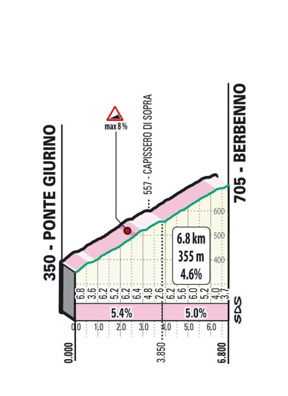 Следующий подъём Бербенно (Berbenno) с более мягкими градиентами - 6,8 км со средним градиентом 4,6%.