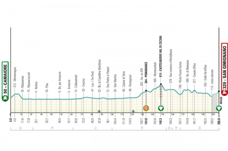 10 марта. Этап 2. Camaiore - San Gimignano, 206 км