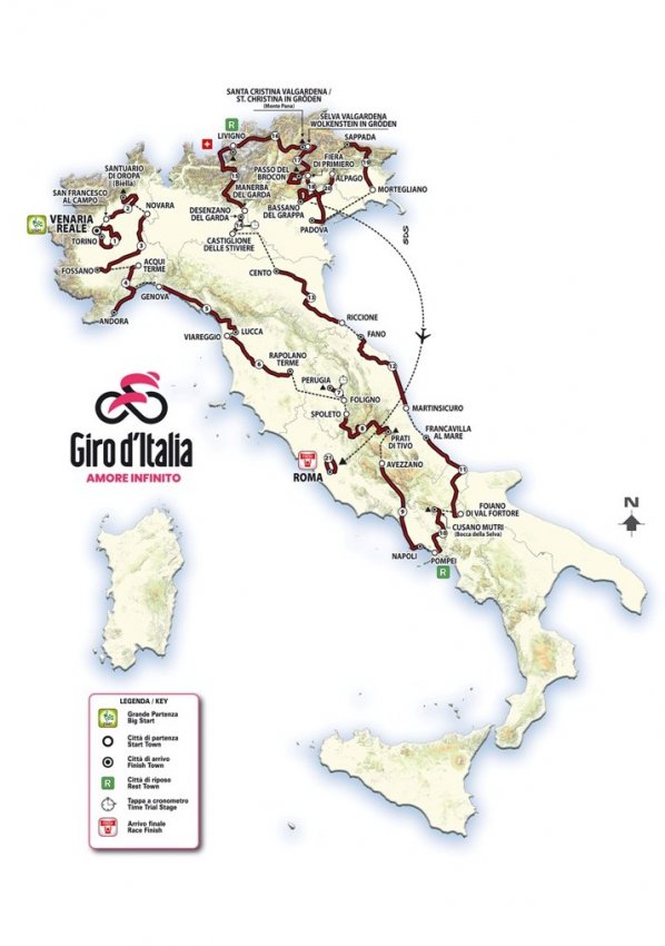 Итальянский Гранд-тур стартует в регионе Пьемонт, где пройдут три первых этапа, в том числе этап с горным финишем в подъём Оропа.