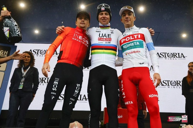 Тадей Погачар отреагировал на ускорение Ремко Эвенепула (Soudal Quick Step), создал просвет, который попытался закрыть Маттео Йоргенсон (Visma Lease a Bike), а затем с каждым кругом лишь увеличивал своё преимущество. Ближайших преследователей Тадей Погачар опередил на 1 минуту 54 секунды. Флориан Липовиц (Red Bull Bora-hansgrohe) преследовал Тадея Погачара в одиночку и на какое-то время создал большой запас над пелотоном, однако его догнали и обошли на финальных километрах. Погода - дождь, туман и холод, в этом году добавили сложности итальянской классике, но не стали препятствием для Тадея Погачара на пути к его 87-й победе в карьере, 24-й победе в сезоне и 78-й победе для команды UAE Team Emirates в этом году.