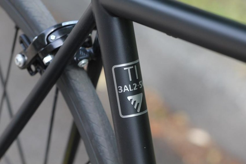 Рама велосипеда сделана из сплава титана 3AL / 2.5V. Карбоновая вилка и карбоновая рулевая труба. Заявленный вес рамы 1,350 грамм.