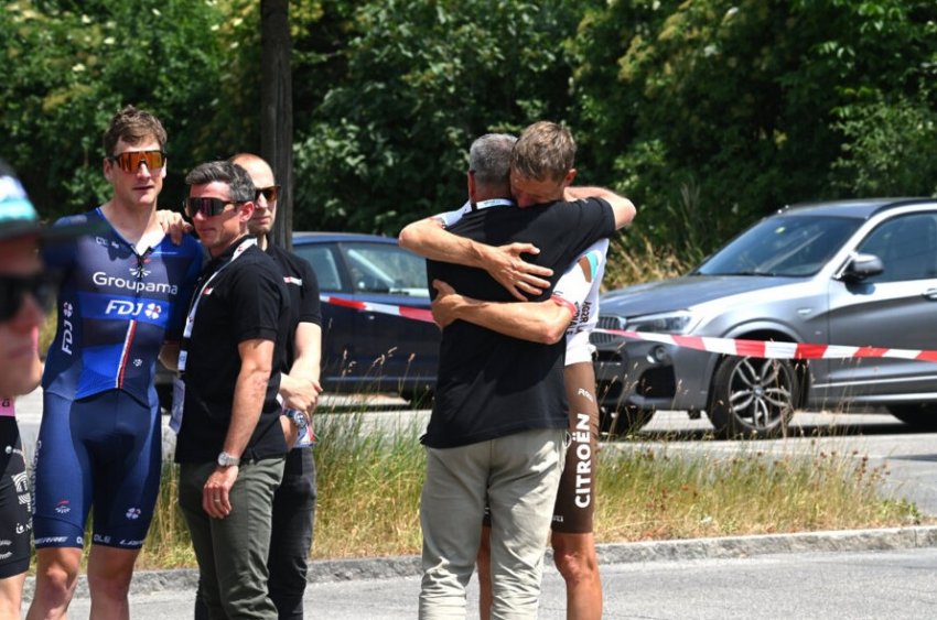 Штефан Кюнг и Михаэль Шер шокированы произошедшим / Фото: © Dario Belingheri / Stringer / Velo / Gettyimages.ru