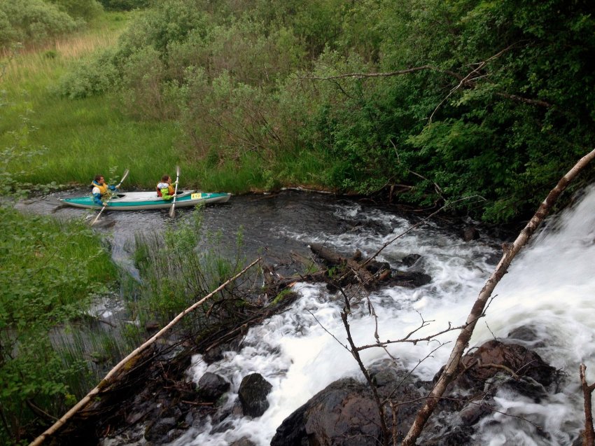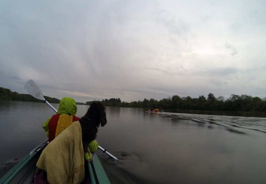 Ещё было красивое КП рядом с деревянным тотемом, медитирующим на скальном берегу. Отметившись, мы поплыли домой.