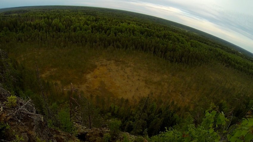 И вот стоим мы на вершине, обозревая болотные и лесные просторы. С этой скалы видно даже поле, откуда мы пришли.