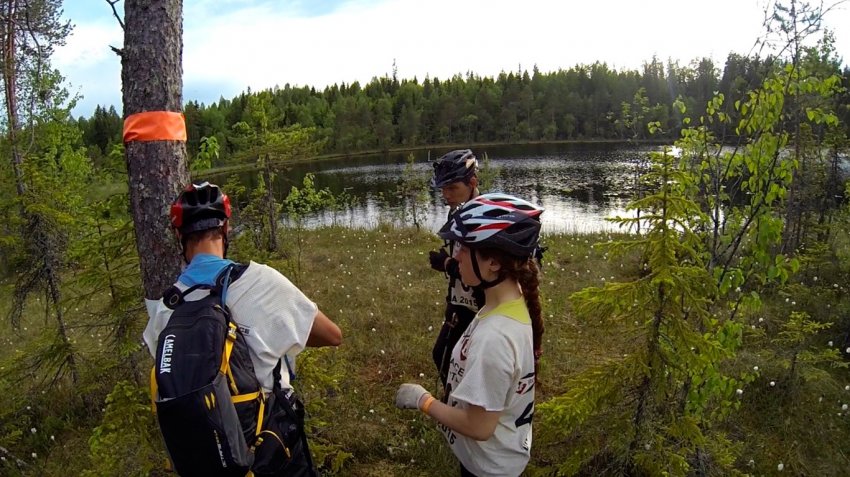 Вскоре мы прикатили на точку смены этапов. Оставили велики и пошли в болотистый лес. Еще на велопарковке мы поняли, что комариков здесь навалом.